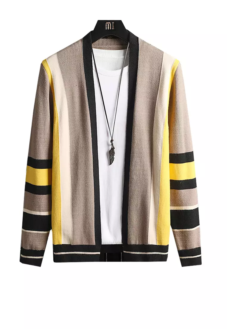 VANSA Fashionable Stripe Stitching Knit Cardigan Jacket VCM-Kw6289